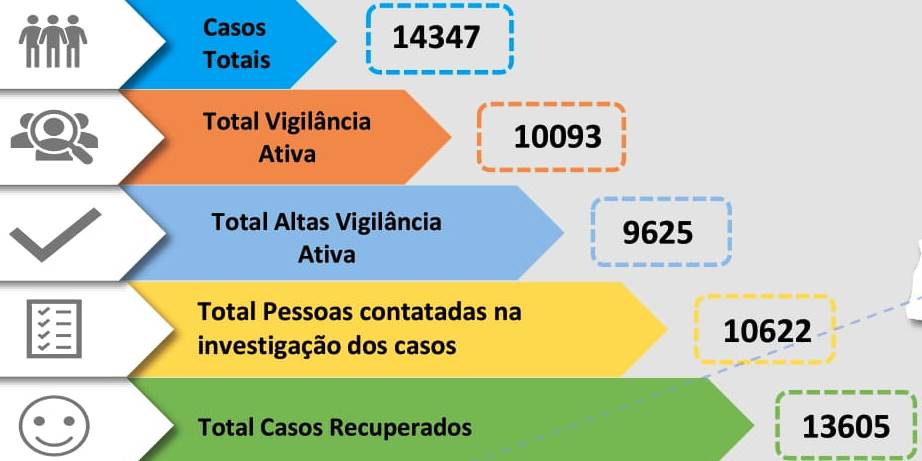 O total de pessoas recuperadas da COVID-19 é de para 13 605 e o número de óbitos passou a ser de 391.