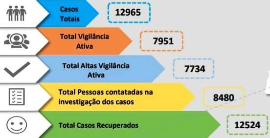 No que diz respeito ao número de recuperados não há alteração em relação ao dia anterior (12 524), assim como o número de óbitos (378) continua inalterado.