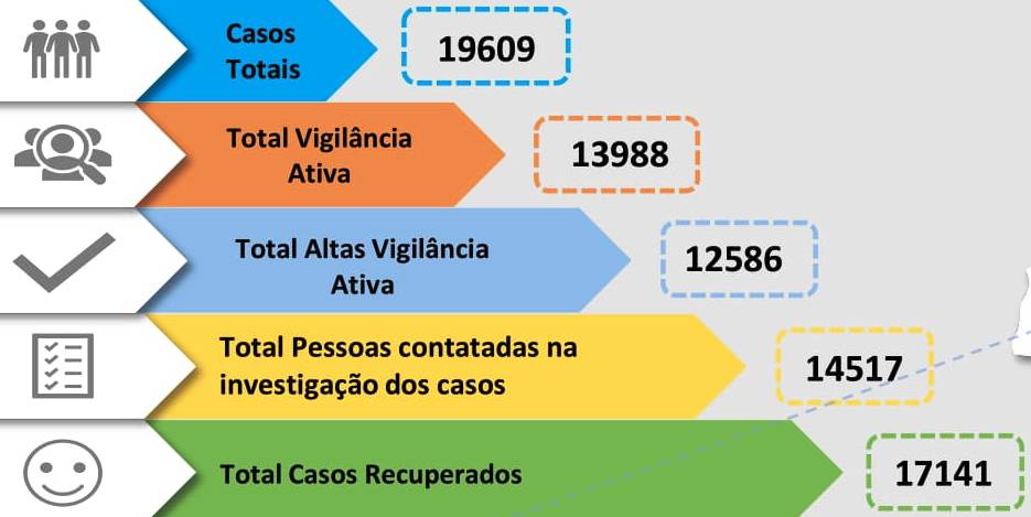 O número de recuperados é de 17 141 e o de óbitos mantém-se nos 420.