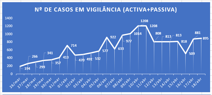 De resto todos nos outros parâmetros os valores são de mantêm-se iguais aos registados ontem com 521 Vigilâncias Ativas, 374 altas da Vigilância Ativa (mais 14), 1020 contactos feitos pelas autoridades de saúde (mais 17) e continuam a verificar-se 17 altas da doença.