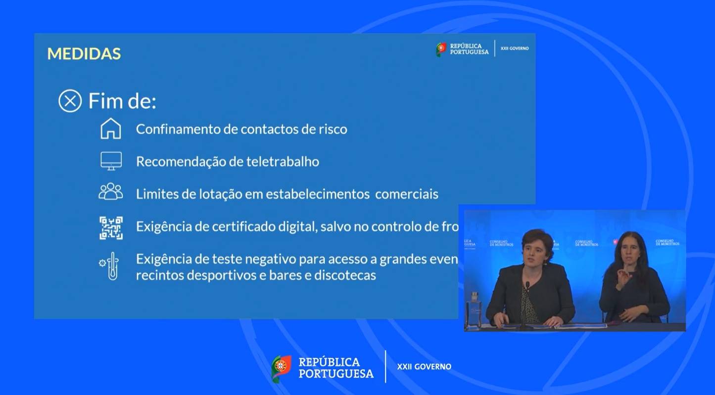 O Conselho de Ministros atualizou hoje várias medidas para avançar para a nova fase da pandemia e em que foi decidido levantar um conjunto e restrições que ainda vigoram, depois do Governo ter ouvido os peritos na quarta-feira.