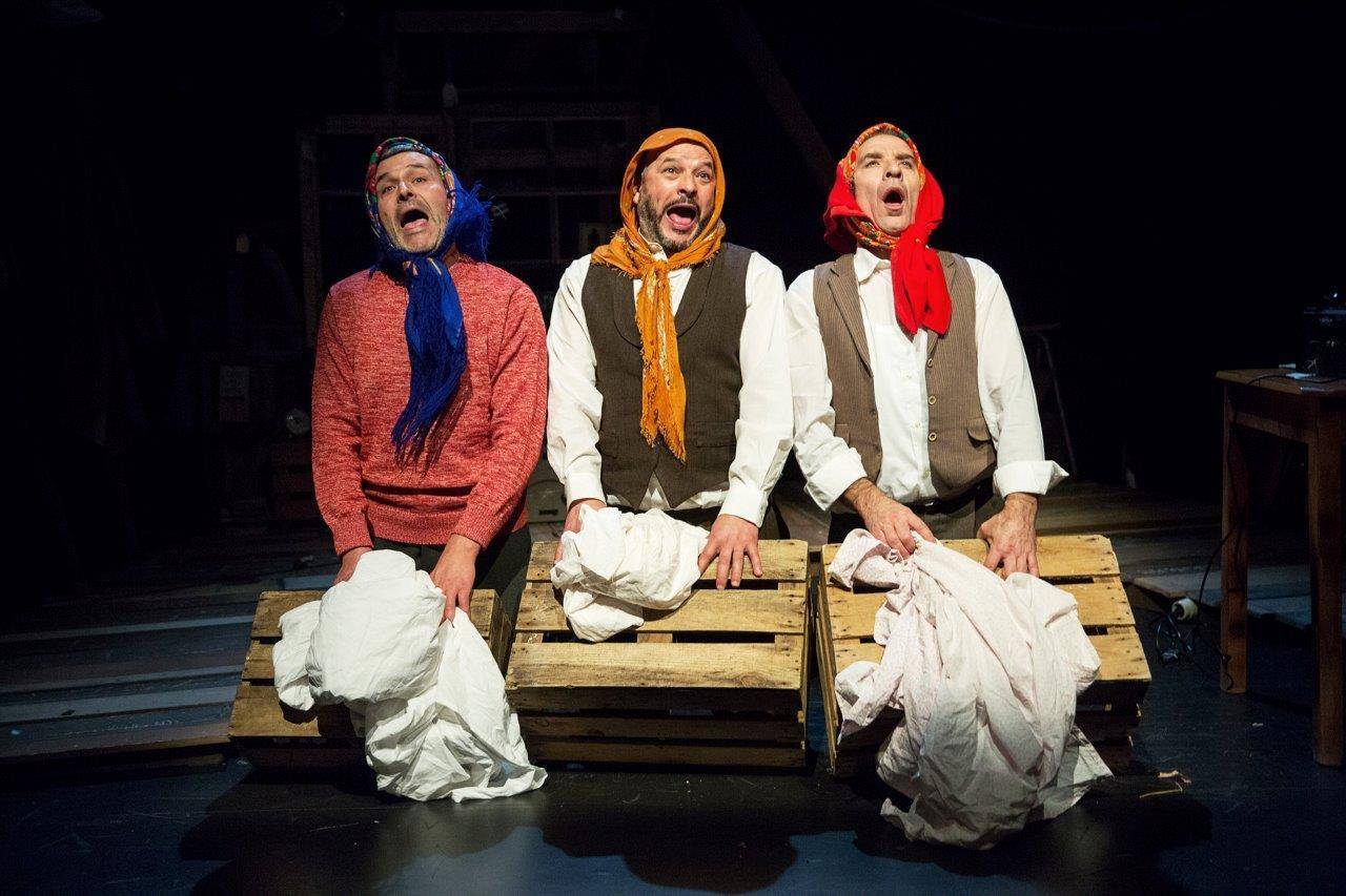 A peça de teatro, com encenação de Steve Johnstone, conta com interpretação de Abel Duarte, Eduardo Correia e Paulo Duarte.