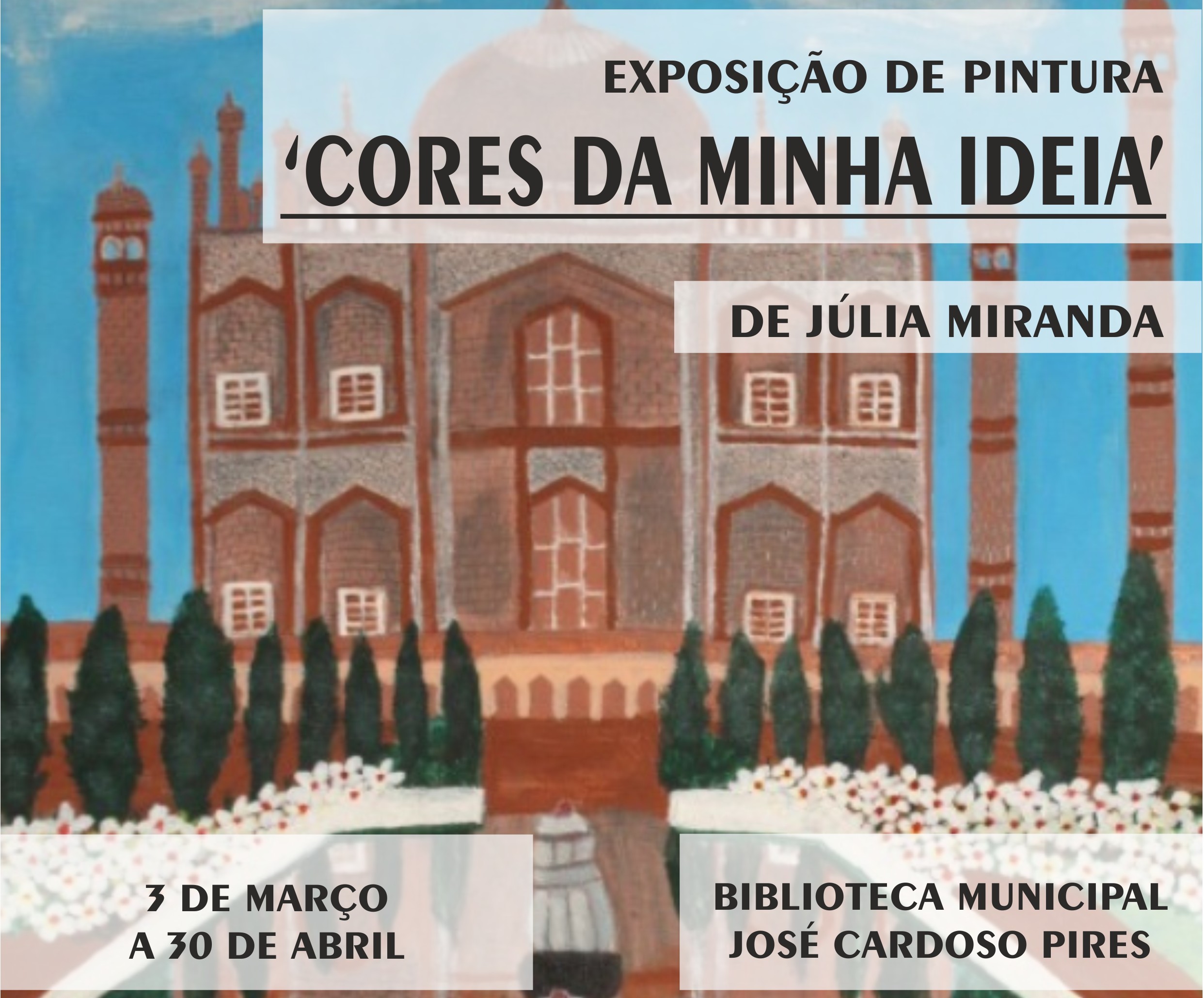 A Biblioteca Municipal José Cardoso Pires está a receber, até dia 30 de abril, a exposição de pintura ‘Cores da Minha Ideia”, de Júlia Miranda.