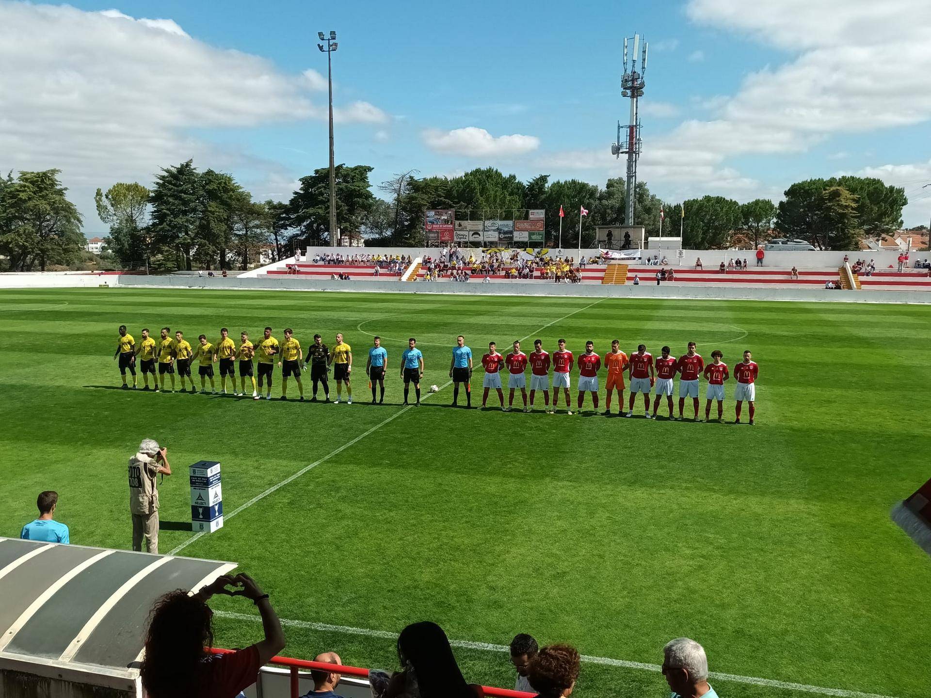 Jogo no campo Chã das Padeiras, em Santarém, a começar melhor para o Abrantes e Benfica, aos 11 minutos a fazer o primeiro da partida por Pedro Damas. Jogada de insistência do Abrantes e Benfica com Rui Sousa a cruzar da esquerda e Pedro Damas a aparece na pequena área em carrinho a empurrar a bola para dentro da baliza do Fazendense.