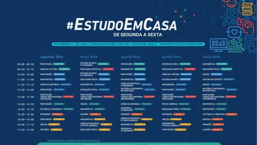 A grelha do espaço #EstudoEmCasa, que vai ocupar parte da programação da RTP Memória durante o terceiro período, das 09:00 às 17:50, com aulas de 30 minutos para as várias disciplinas, já é conhecida, mas os professores querem ter também acesso aos temas que vão ser tratados em cada emissão para poderem preparar o trabalho com os alunos.