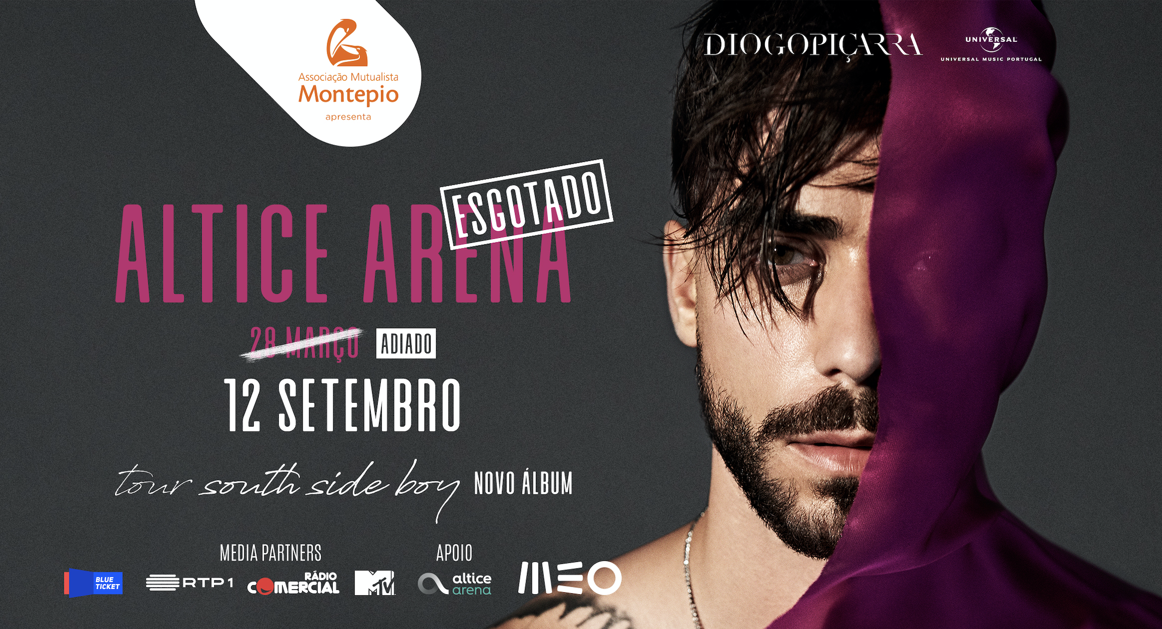 Seguindo as orientações das autoridades nacionais e da Direção-Geral de Saúde, o concerto de Diogo Piçarra na Altice Arena, marcado para o dia 28 de março, foi adiado para o dia 12 de setembro.