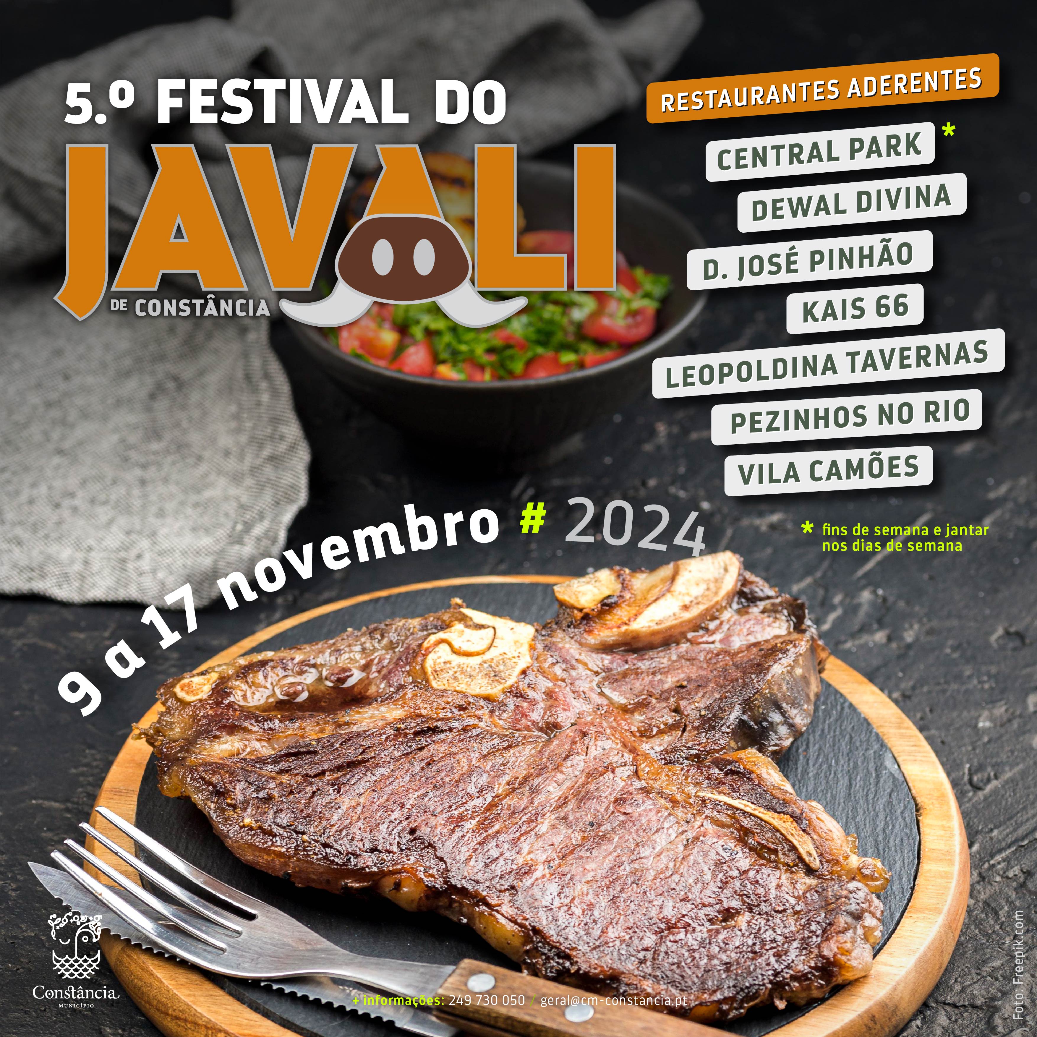 A partir de sábado, dia 9 de novembro, Constância vai receber a 5.ª edição do Festival do Javali, um evento que decorre nos sete restaurantes aderentes, até dia 17.