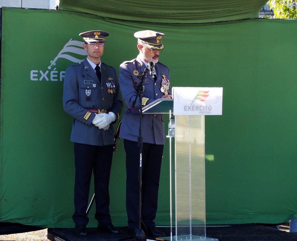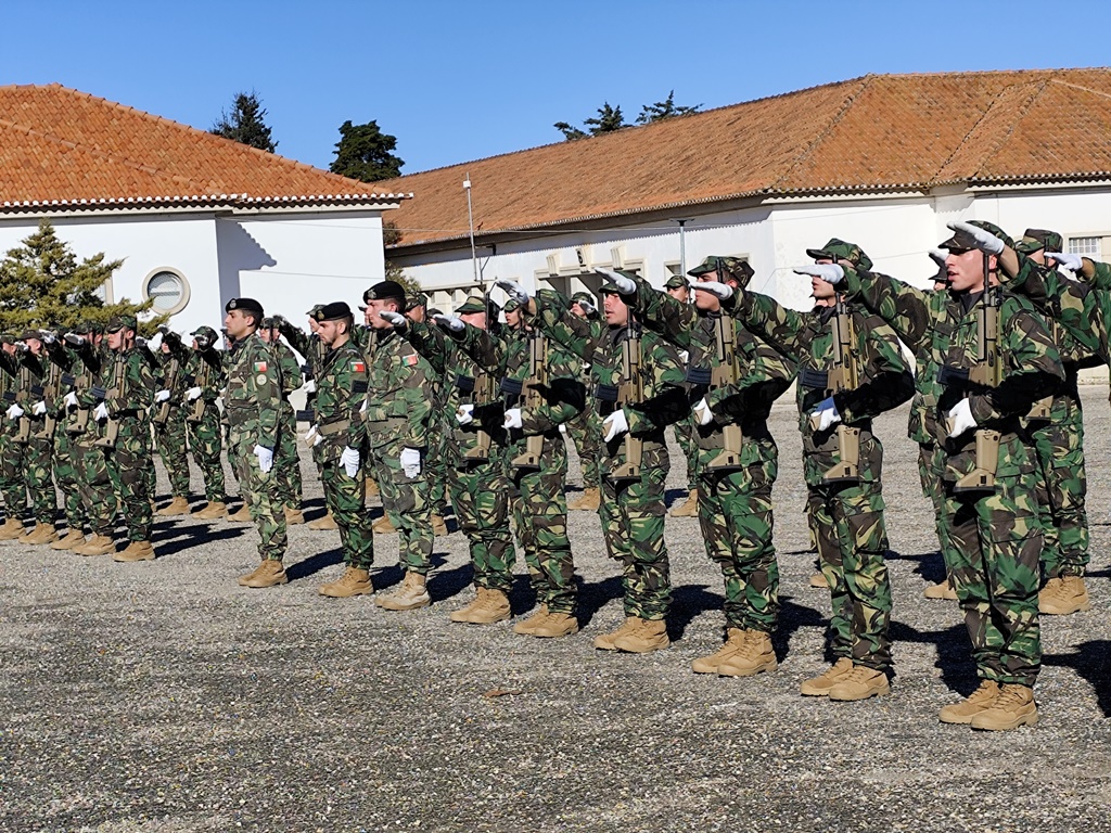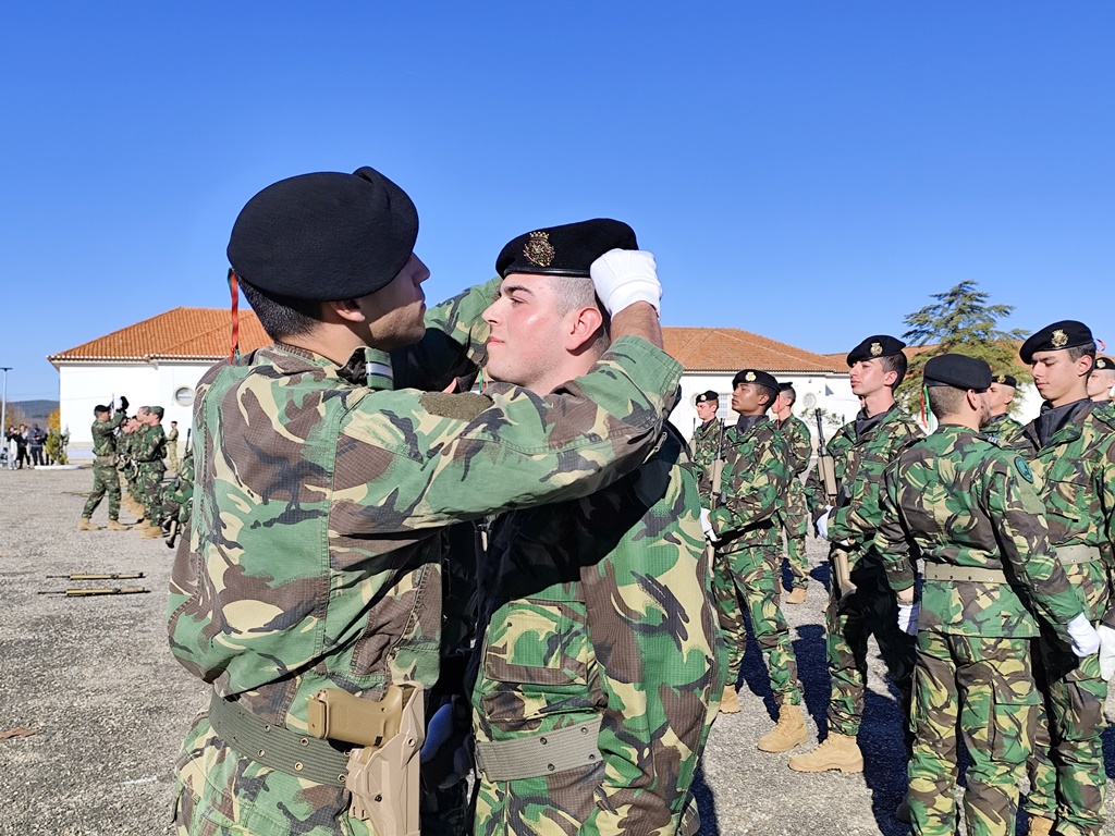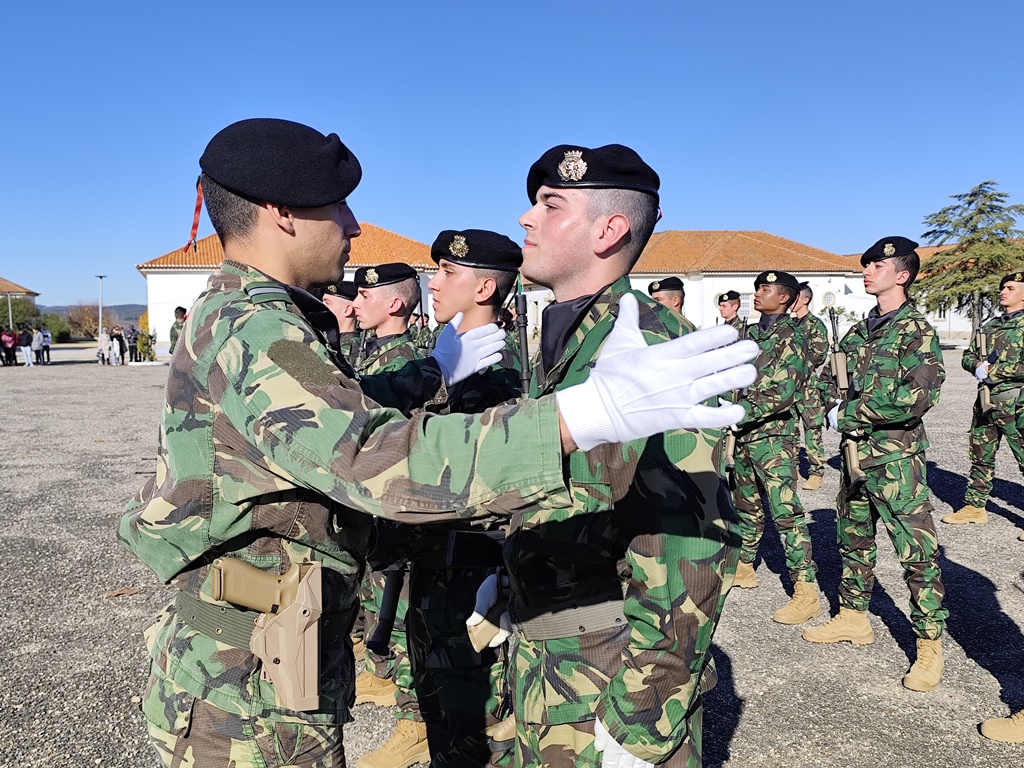 Para fechar a atividade os jovens, e pais, assistiram à cerimónia de Juramento de Bandeira do 7.º curso de 2024 de mais uma recruta. Um dos momentos altos da vida de qualquer militar que assenta no primeiro juramento perante o Estandarte Nacional e, logo depois, estarem em prontidão para receber a sua boina.
