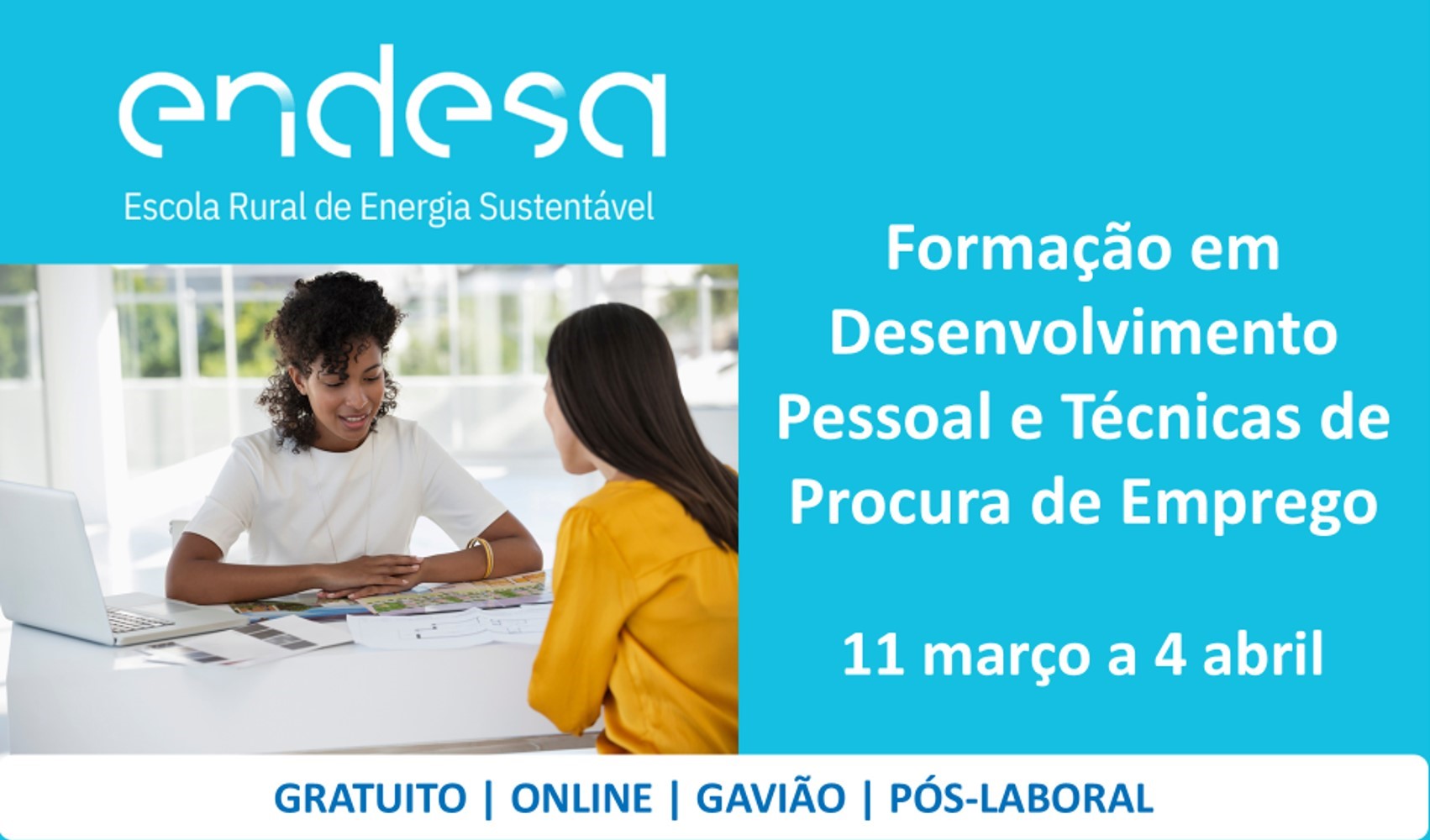 A Endesa, através da sua "Escola Rural de Energia Sustentável" e no âmbito do seu plano global de formação, que tem como objetivo promover o desenvolvimento social e económico, a criação de emprego e a fixação da população na região abrangida pelo Projeto de Transição Justa do Pego, irá realizar no Município do Gavião, um curso/formação totalmente gratuito sobre "Desenvolvimento Pessoal e Técnicas de Procura de Emprego".
