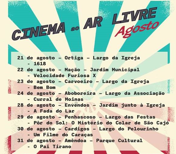 A Câmara Municipal de Mação volta a apostar este verão, em agosto, num ciclo de cinema em todas as freguesias, ao ar livre e gratuito. Todas as sessões têm lugar às 21h30.