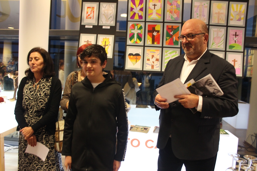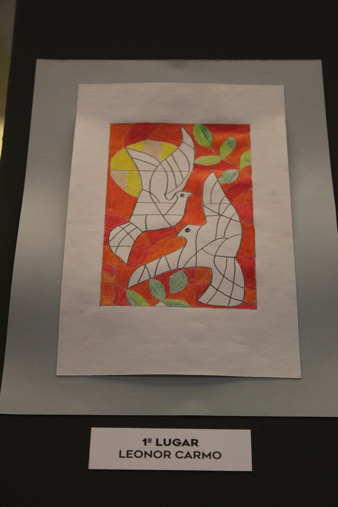 E este ano a aluna Leonor Carmo, com as pombas da paz em fundo vermelho, ficou em primeiro lugar, em segundo Pedro Dias, e em terceiro lugar ficaram os trabalhos de Carolina Salgueiro e de Maria Passarinho.