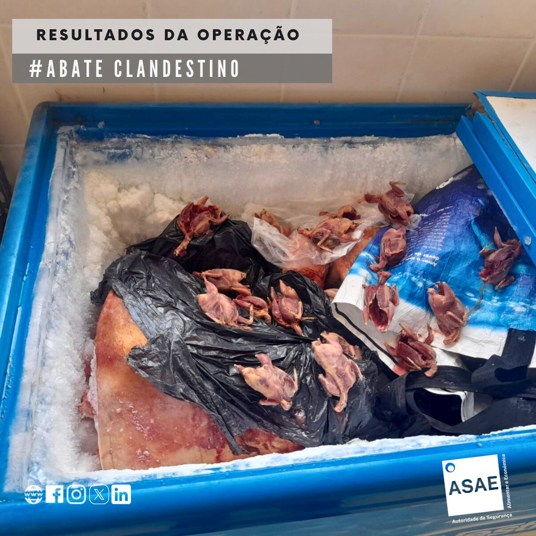A Autoridade de Segurança Alimentar e Económica (ASAE), através da Unidade Regional do Sul – Unidade Operacional de Santarém, realizou uma ação de fiscalização a um operador económico no Município de Abrantes, tendo procedido à apreensão de diversas carcaças de animais provenientes de abate clandestino. A ASAE indica que encontrou javalis, pombos, entre outros animais num total de aproximadamente 400 Kg de carne.