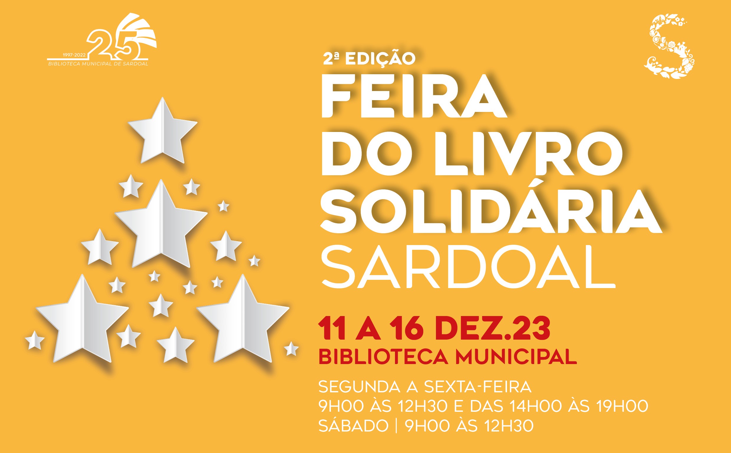 A Biblioteca Municipal de Sardoal volta a promover uma Feira do Livro Solidária sob o mote “Leve livros, traga alimentos”. A iniciativa, “depois do sucesso da primeira edição”, está inserida no âmbito da quadra natalícia e terá lugar de 11 a 16 de dezembro, no horário de segunda a sexta-feira, das 9h às 12h30m e das 14h às 19h, e ao sábado, das 9h às 12h30m.