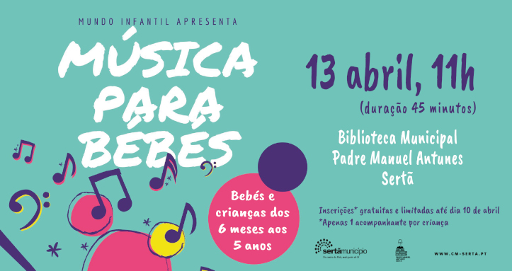 A Biblioteca Municipal Padre Manuel Antunes, na Sertã, recebe a 13 de abril, sábado, às 11 horas, a iniciativa “Música para Bebés”. A atividade lúdica, destinada a bebés a partir dos 6 meses e a crianças até aos 5 anos, promete levar os participantes numa viagem mágica repleta de criatividade.