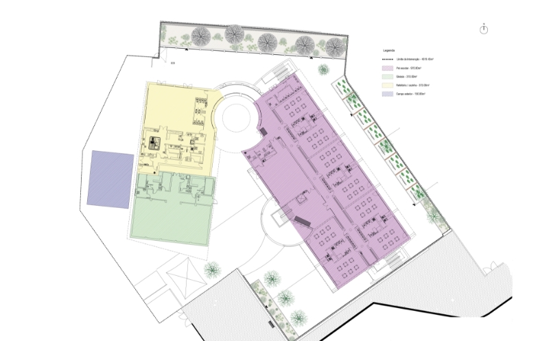 O projeto prevê ainda a ampliação das áreas de apoio, nomeadamente “refeitório, sala polivalente, sala de ciências, instalações sanitárias, sala de professores, sala de assistentes operacionais e áreas administrativas”, o que se “materializou na ampliação da área de implantação e construção e áreas de apoio cobertas”.
