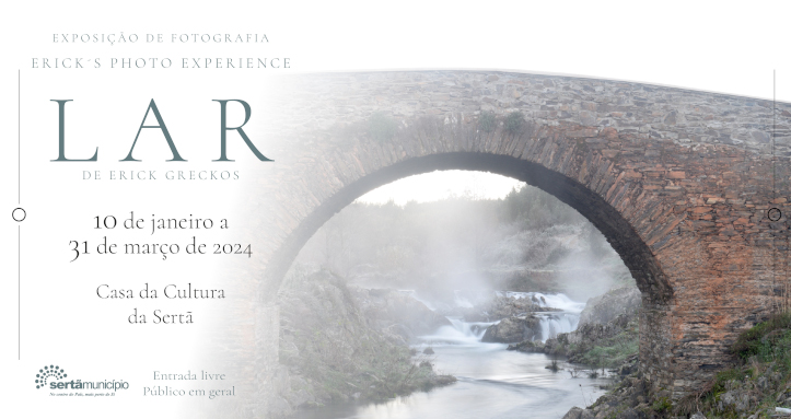 Está patente ao público, na Casa da Cultura da Sertã, a exposição de fotografia intitulada LAR - Ericks Photo Experience. As imagens expostas foram captadas pela lente de Erick Greckos, natural dos Países Baixos, emigrante em diversos países, mas desde 2018 residente em Portugal, onde se sente em casa (LAR). Como descreve o autor da exposição, "em Portugal sinto-me em casa, na natureza, junto à água e com os animais. A vida ao ar livre nesta zona central de Portugal deu-me uma nova ‘casa’”.