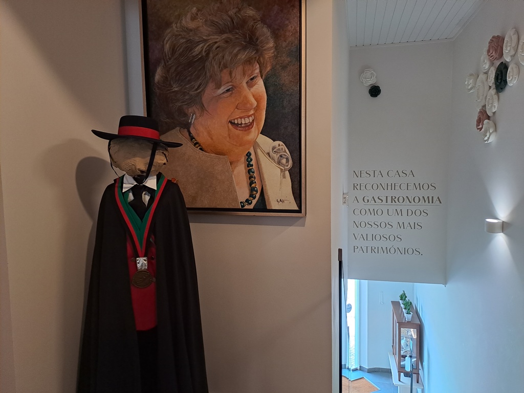 E para reforçar a importância há quatro fatores que aplica nesta nova sala. A principal é, sempre, a gastronomia. E na arte de bem servir ou de bem comer, depende da perspetiva, Fernanda Martins diz que continua a ir à cozinha e meter a mão na massa: “Gosto de cozinhar.” A segunda continua a apontar à gastronomia com a presença, à entrada da sala, do traje da Confraria Gastronómica do Ribatejo, à qual pertence desde 2006.