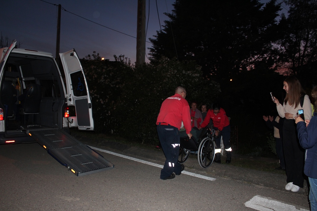 Foi um exercício. Se fosse a realidade a aldeia não estaria em peso na antiga escola primária. Os mais novos ou capazes andariam perto dos bombeiros, próximos das linhas de fogo a tentar ajudar e a proteger as suas casas e terras.E ali, na antiga escola primária de Chão de Lopes, estariam as pessoas mais velhas ou de mobilidade mais reduzida.
