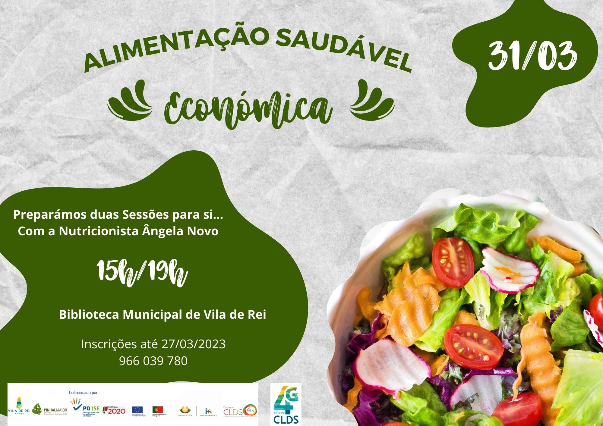 A equipa do CLDS 4G de Vila de Rei, com o apoio da Autarquia vilarregense, vai organizar, no próximo dia 31 de março, duas sessões sobre a temática ‘Alimentação Saudável e Económica’, com a nutricionista Ângela Novo.