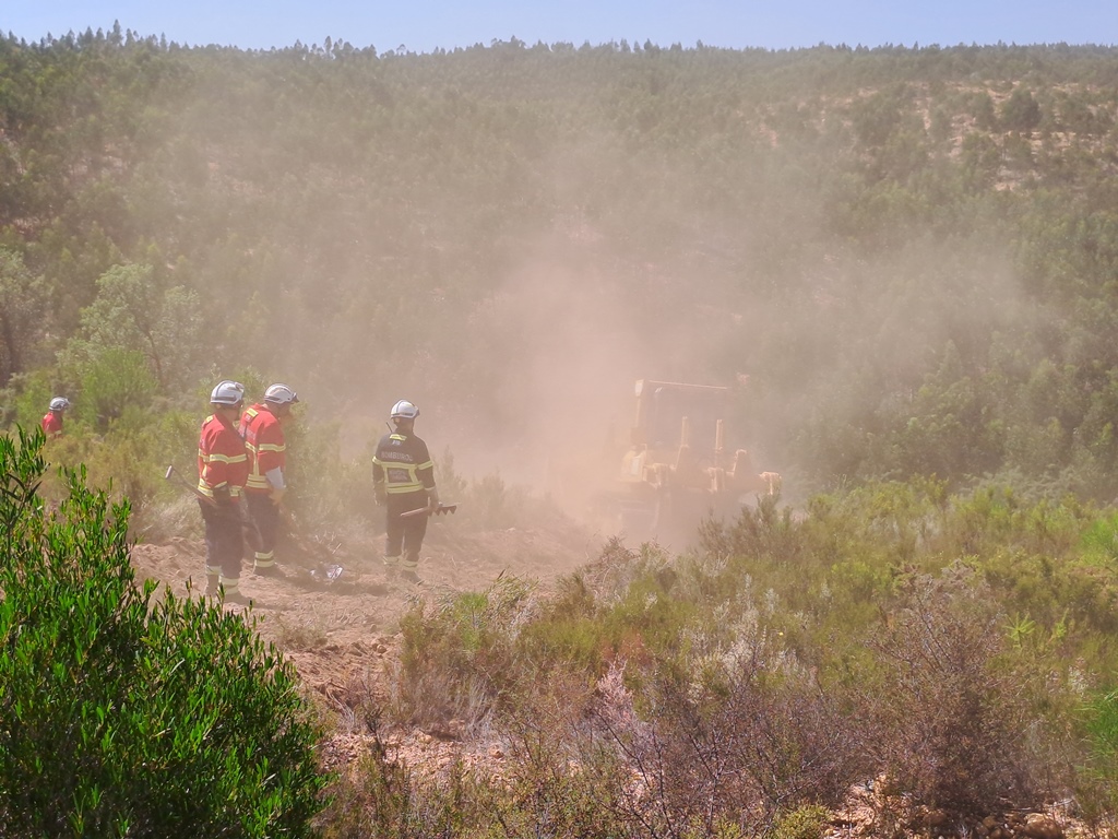 Depois, de acordo com o formador, há questões de segurança a ter em conta. A entrada destes equipamentos num teatro de operações é sempre acompanhada por uma, ou mais, equipas apeadas e com carros de combate a incêndios para prevenir qualquer incidente e, acima de tudo, salvaguardar o chefe de máquina e operador do equipamento. André Teodoro explicou que a sua ativação depende muito do tipo de terreno, da orografia, nomeadamente nos níveis de inclinação, e depois do tipo de vegetação. Uma máquina não entra “à-toa” a mandar árvores abaixo. Muitas vezes são acompanhadas por equipas com motosserras que cortam as árvores antes das máquinas trabalharem.