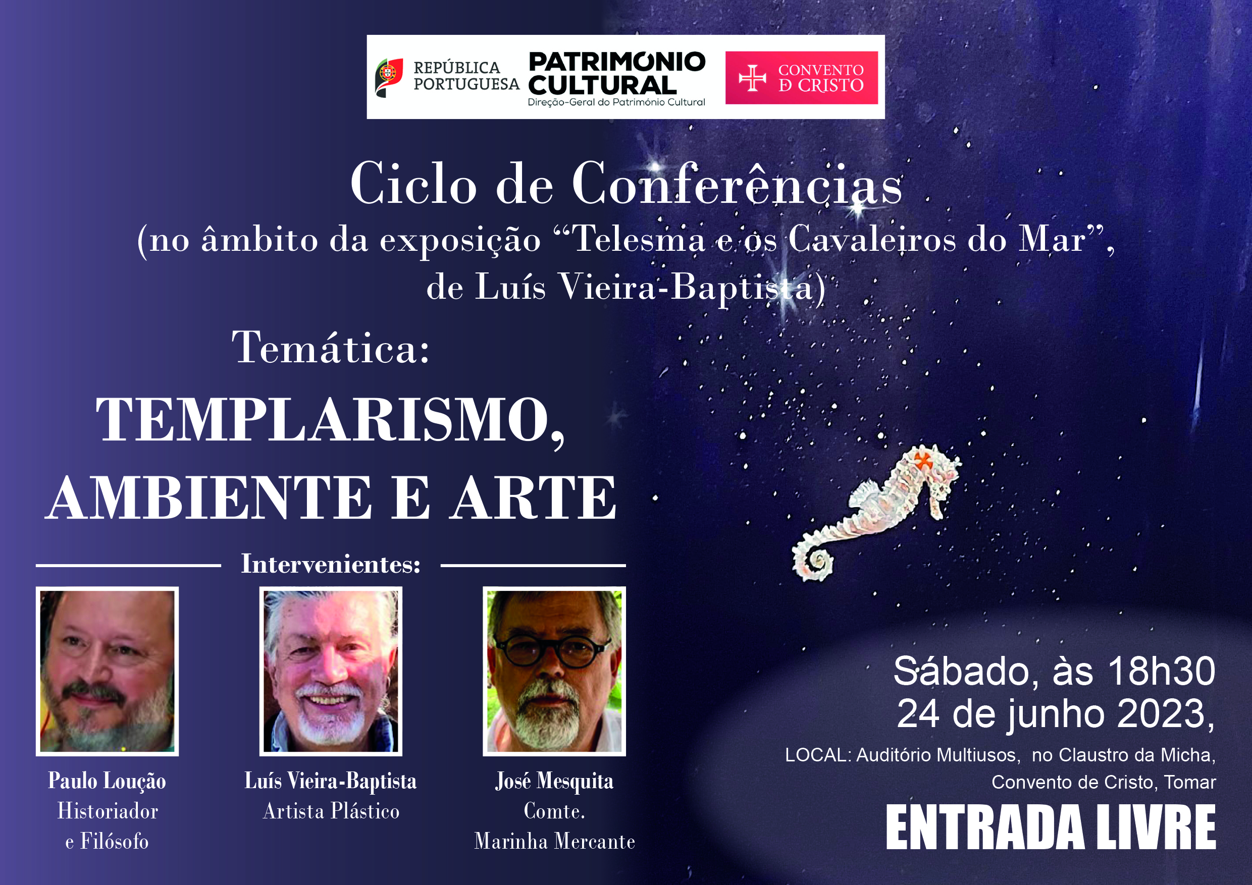 O Convento de Cristo recebe no próximo sábado dia 24 de junho, pelas 18H30, a Conferência “Templarismo, Ambiente e Arte” no âmbito da Exposição/Instalação “Telesma, os Cavaleiros do Mar” que se encontra patente neste Monumento.