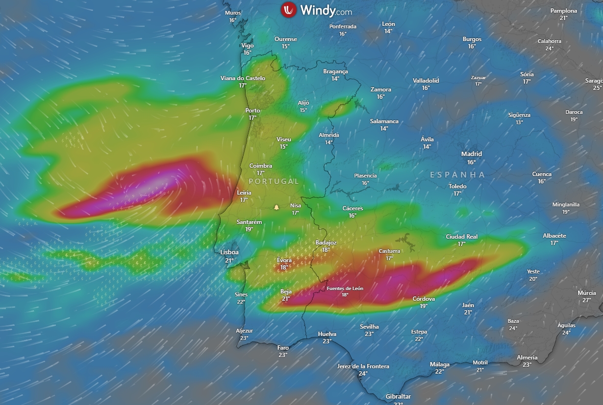 O instituto indica que a precipitação “deverá ser por vezes forte e ocasionalmente acompanhada de trovoada no litoral das regiões Norte e Centro” logo a partir da tarde de quarta-feira, “estendendo-se ao restante território a partir da madrugada do dia 19 e aumentando de frequência e intensidade durante a tarde desse dia”.