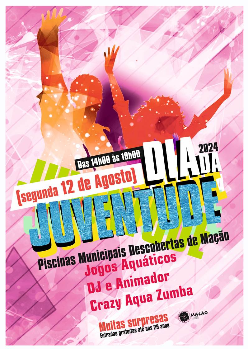 A Câmara Municipal de Mação vai assinalar, uma vez mais, o Dia Internacional da Juventude na tarde da próxima segunda-feira, dia 12 de agosto. O convite aos jovens é o de uma animada tarde nas Piscinas Municipais de Mação, com entrada gratuita para os utentes até aos 29 anos.
