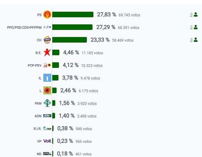 No distrito de Santarém ganhou o PS em quase igualdade com a AD e em terceiro ficou o CHEGA. Ao nível de eleitos cada partido elegeu 3 deputados para a próxima legislatura. A CDU candidatou Bernardino Soares que não chegou perto de valores que poderiam dar expetativa de eleição.
