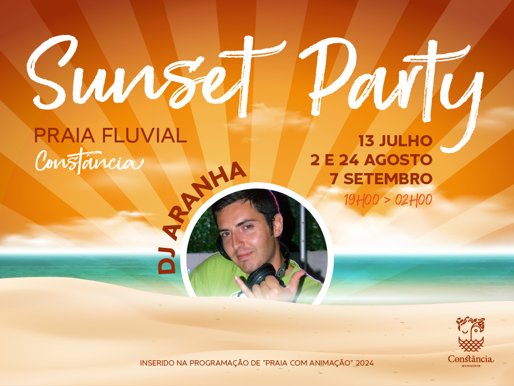 Na próxima sexta-feira, 2 de agosto, a Praia Fluvial de Constância recebe a segunda Sunset Party deste verão, com o DJ Aranha, um evento que vai decorrer das 19h00 às 02h00.