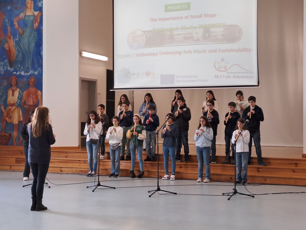 São 8 alunos e 2 professoras da escola Zakladna Skola, de Haniska, Eslováquia, que estão em Abrantes uma semana naquele que é o arranque, em Abrantes projeto Erasmus+ “TEAMS / Technology Embracing Arts Music and Sustainability” do qual a Escola Secundária Solano de Abreu (ESSA) faz parte.