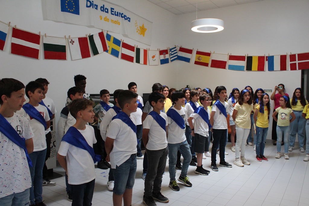 A entrada de João Costa, e comitiva, no interior da escola contou com a atuação dos alunos que, um dia depois do Dia da Europa, entoaram o Hino da Alegria. E entre a afinação dos executantes, o ministro perguntou o nome da música e do seu autor, e as respostas surgiram em uníssono.