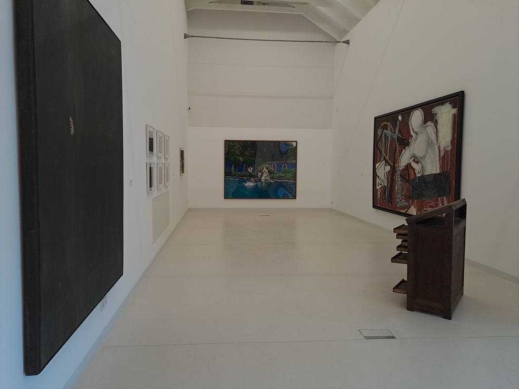 Na mesma folha de sala o curador explica as duas salas que “são diferenciadas em termos de dimensão e de solução arquitetónica, apresentando-se obras de assinalável dimensão e importância histórica na sala mais pequena, em contraponto com a sala maior, onde decorre a exposição de conjuntos significativos e pouco mostrados de obras, organizados por autor, como um fragmento do arquivo que é o acervo da Coleção.”