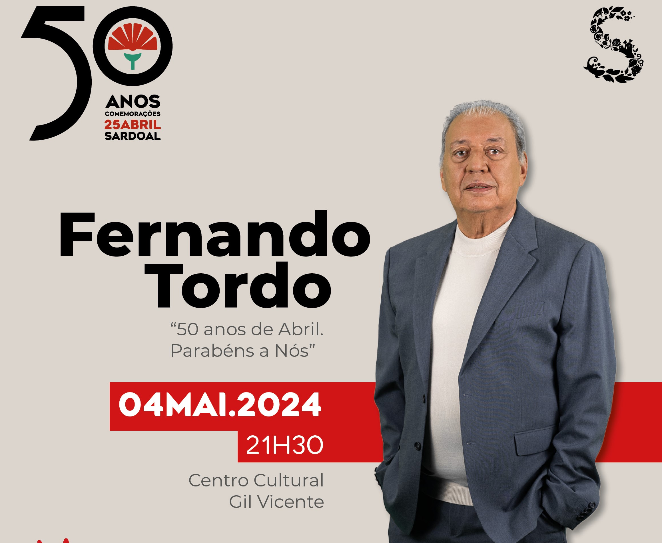 No âmbito das comemorações dos 50 anos do 25 de Abril, o Centro Cultural Gil Vicente apresenta no dia 4 de maio, pelas 21h30m, Fernando Tordo com o espetáculo “50 Anos de Abril. Parabéns a Nós.”