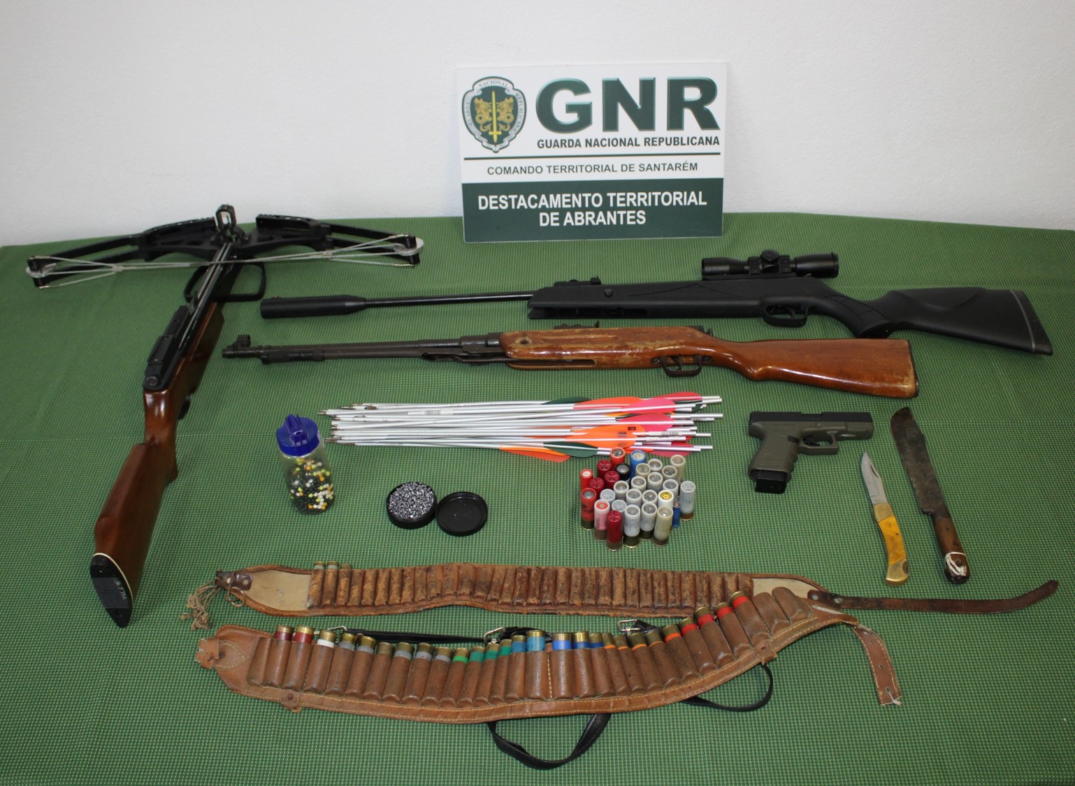 Em comunicado, a GNR dá conta que “no âmbito de uma investigação por posse ilegal de armas, os militares do NIC encetaram diligências que culminaram com a realização de duas buscas domiciliárias e uma em veículo”, tendo sido apreendido diverso material do qual se destaca duas armas brancas, duas espingardas de ar comprimido, uma arma de airsoft, uma besta, uma mira telescópica, 29 munições de diversos calibres e 36 flechas.