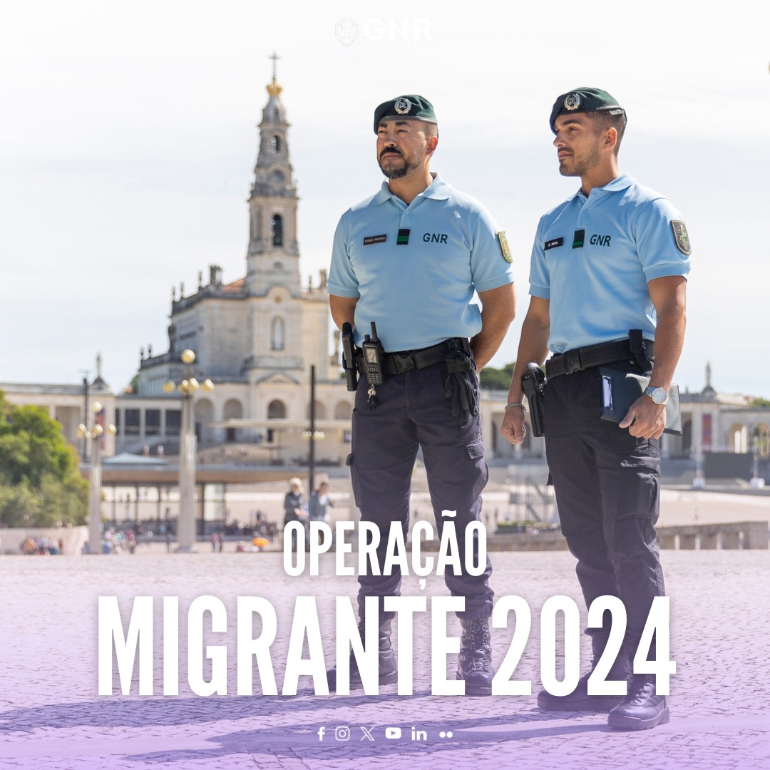 No âmbito da Operação Migrante 2024, e tratando-se de um evento de grande impacto a nível nacional, que reúne milhares de peregrinos, principalmente migrantes, a Guarda Nacional Republicana implementa um dispositivo especial de segurança, com a interdição temporária do espaço aéreo, prevenindo desta forma a realização de voos não autorizados de Drones, intensifica as ações de patrulhamento nas principais vias de acesso à cidade de Fátima, para garantir a segurança e tranquilidade pública do evento e assegurar a segurança rodoviária e fluidez do trânsito, com o objetivo de apoiar e garantir a segurança dos peregrinos e prevenir a atividade criminal, através do reforço do policiamento no Santuário e zonas envolventes.