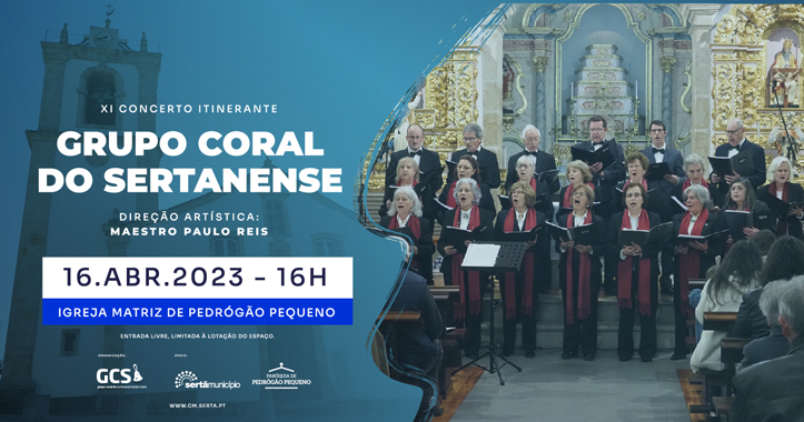 A 16 de abril, a Igreja Matriz de Pedrógão Pequeno vai ser o cenário de mais um concerto itinerante do Grupo Coral do Sertanense, que se iniciará às 16 horas. Trata-se do 11.º concerto no âmbito do Ciclo de Concertos Itinerantes do Grupo Coral do Sertanense Futebol Clube pelas localidades do concelho da Sertã. Com apoio do Município da Sertã e da Paróquia de Pedrógão Pequeno, o concerto contará com a direção artística do Maestro Paulo Reis, e apresentará temas como “Vejam bem” (José Afonso), “Traz outro amigo também” (José Afonso), “Canção de Embalar” (José Afonso), “Dona Nobis” (Mozart), “São Nuno Álvares Pereira” (Paulo Reis) e “Raise Me Up” (Josh Groban, com arranjo de Paulo Reis), entre outros. A entrada é livre.