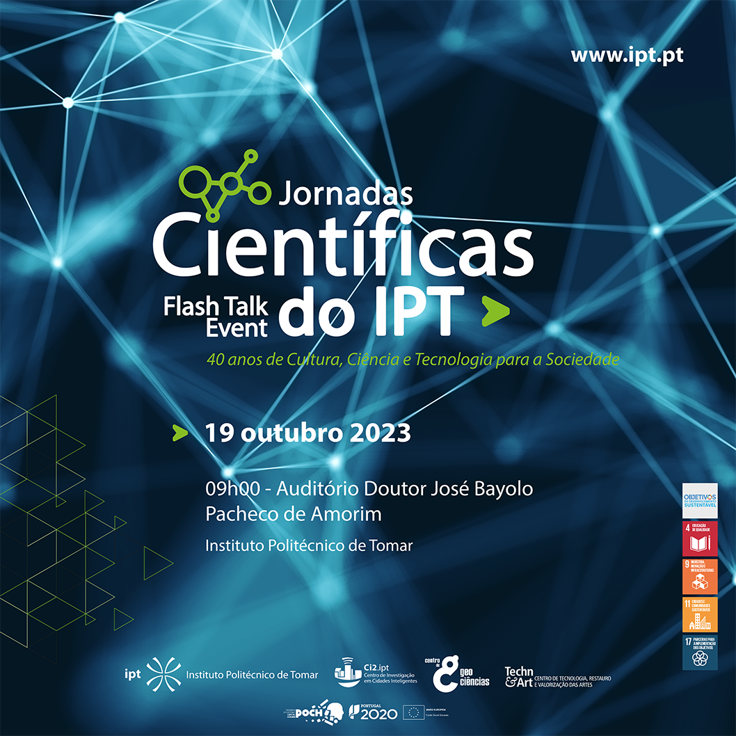 No total, o programa das Jornadas, que tem início agendado para as 9:15 horas, vai reunir 23 apresentações orais, 55 posters digitais de diferentes projetos e mergulhar em cinco mostras tecnológicas e experimentais. As três sessões de flash talks serão dinamizadas pelos Centros de Investigação do IPT – Centro de Geociências (GEO), Centro de Tecnologia, Restauro e Valorização das Artes (TECHN&ART) e Centro de Investigação em Ciências Inteligentes (Ci2).