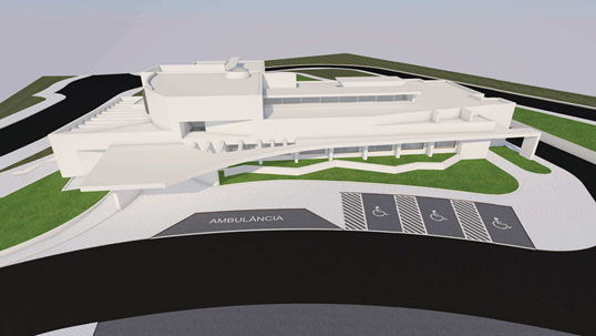 No que diz respeito ao estacionamento, encontra-se prevista uma capacidade de 67 lugares, sendo três afetos a pessoas com mobilidade condicionada, que se localizam na zona mais próxima da entrada, e dois estacionamentos reservados exclusivamente a ambulâncias, para além da reserva de um lugar para paragem nas manobras de carga e descarga de pacientes.
