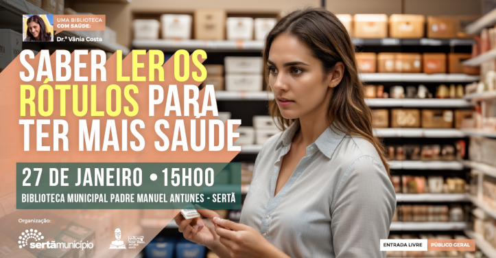 A Biblioteca Municipal Padre Manuel Antunes, na Sertã, retoma em 2024 a iniciativa “Uma Biblioteca com Saúde”, com mais uma edição no dia 27 de janeiro, às 15 horas. A sessão, com o tema “Saber ler os rótulos para ter mais saúde”, será dinamizada por Vânia Costa, nutricionista e especialista em Literacia em Saúde no Ispa – Instituto Universitário.