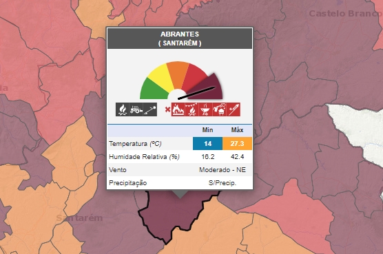 Na região Abrantes, Barquinha, Constância, Chamusca, Ferreira do Zêzere, Mação, Sardoal, Vila de Rei, Sertã ou Gavião estão com o risco máximo de ocorrência de incêndios.