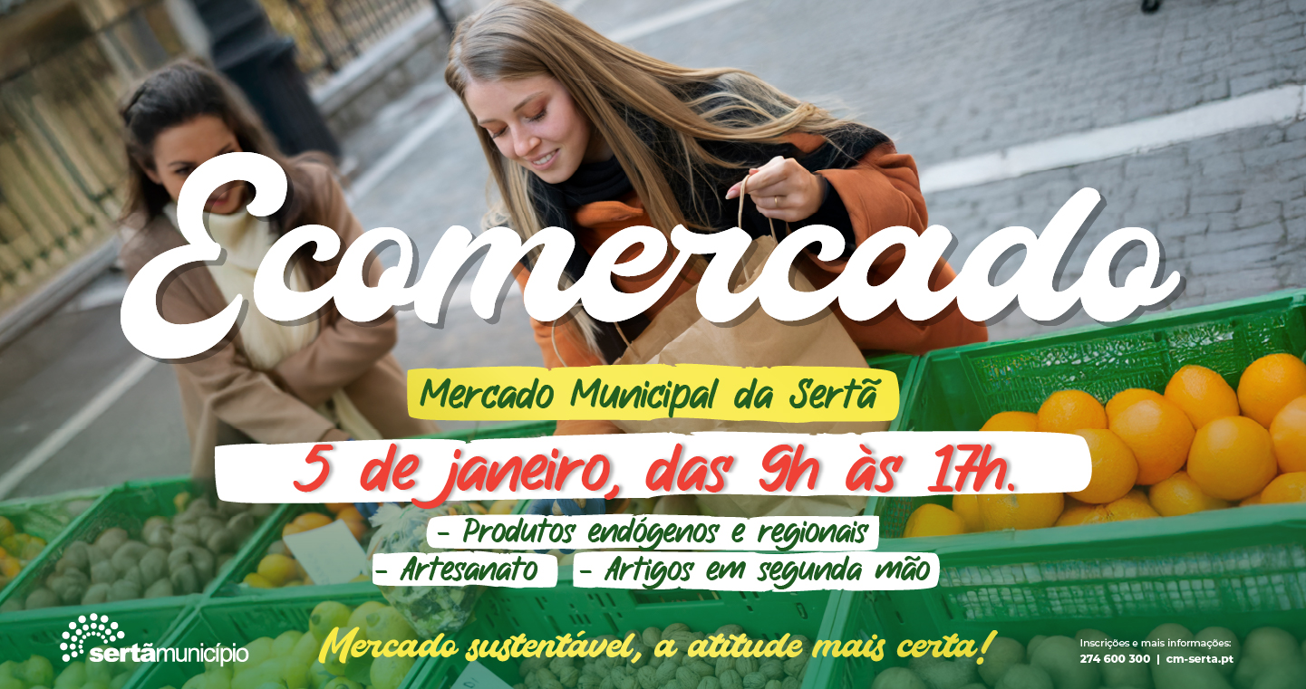 O ano de 2025 traz consigo mais 12 edições do Ecomercado ao Mercado Municipal da Sertã. O primeiro mercado sustentável do novo ano realiza-se já no dia 5 de janeiro, das 9 às 17 horas. Esta iniciativa do Município da Sertã realiza-se mensalmente no primeiro domingo, e possibilita a aquisição de produtos endógenos diretamente do produtor, produtos regionais, artesanato e artigos em segunda mão.