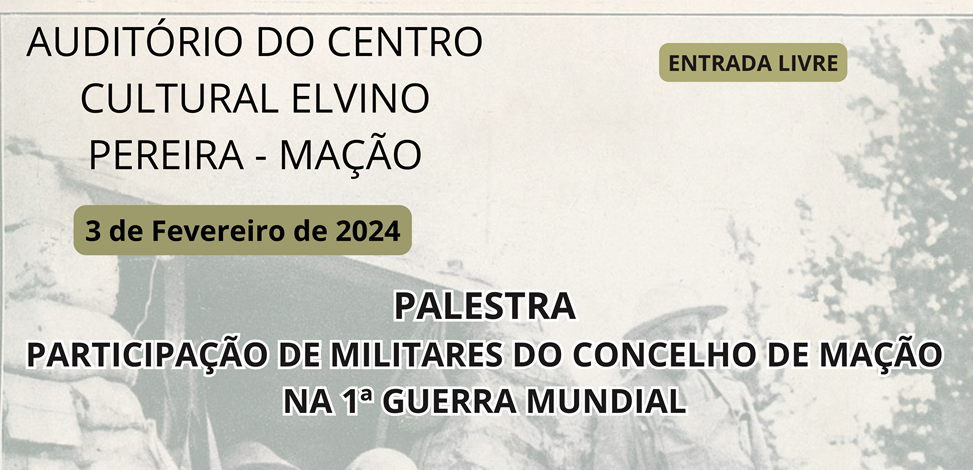 No dia 3 de fevereiro, sábado, Mação vai receber uma Palestra sobre os Militares do concelho que participaram na 1.ª Guerra Mundial. A Palestra terá lugar no Auditório do CC Elvino Pereira, com início às 14h30 sendo promovida pela Associação "Os Amigos da Estação de Ortiga", com o apoio do Município de Mação.
