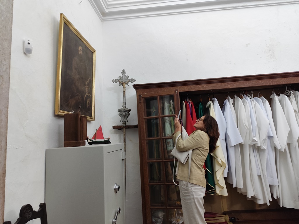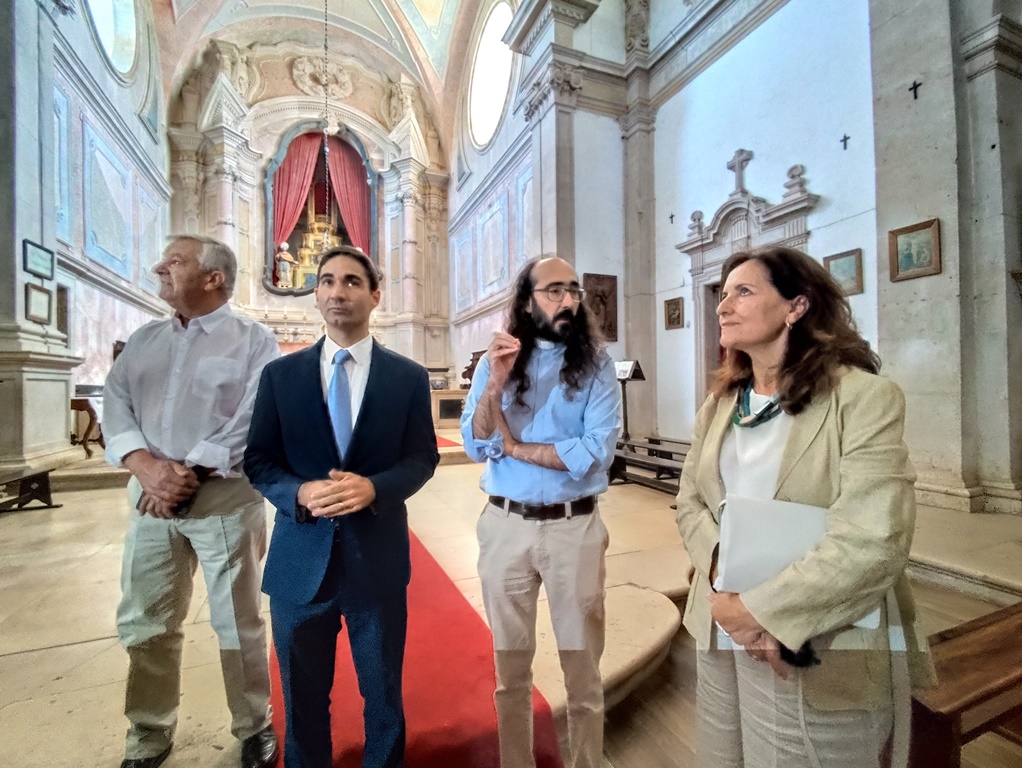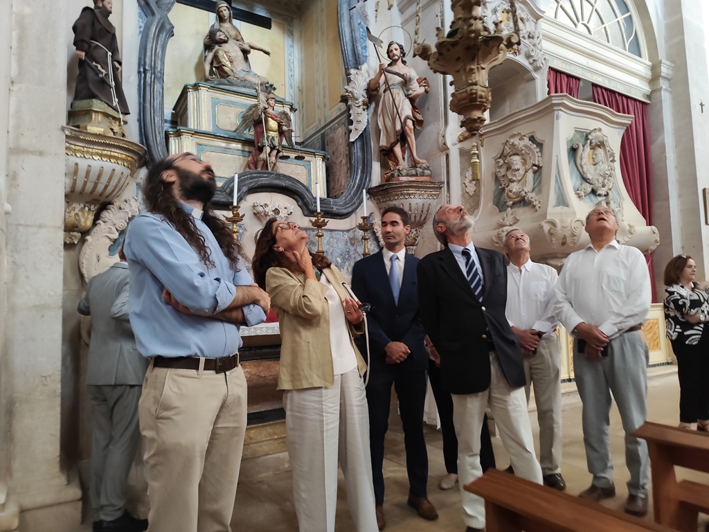 A ministra foi acompanhando as explicações e, sempre muito interventiva, foi abordando diversas áreas, como a imagem de Nossa Senhora da Boa Viagem num “selo” no teto da nave ou até um quadro de Rivera que existe na sacristia do monumento.