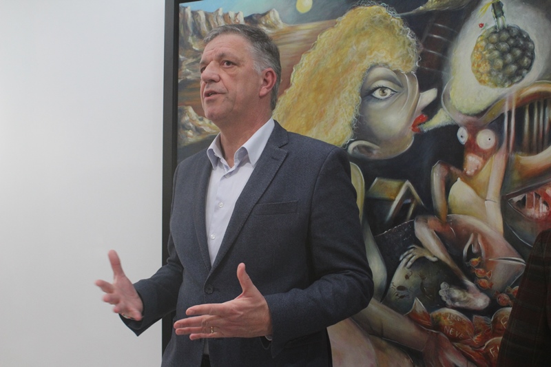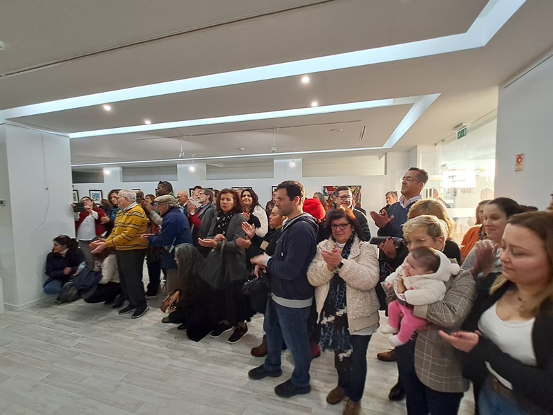 Descerrada a placa que fica à entrada da Galeria, abrem-se as duas portas para mostrar os trabalhos do Carlos Saramago, pertencentes à coleção adquirida pelo Município. O artista diz ao presidente da Câmara que quer dizer umas palavras ao que Vasco Estrela lhe pede uns instantes para poder avançar com os outros momentos, que eram apenas do conhecimento de poucas pessoas.