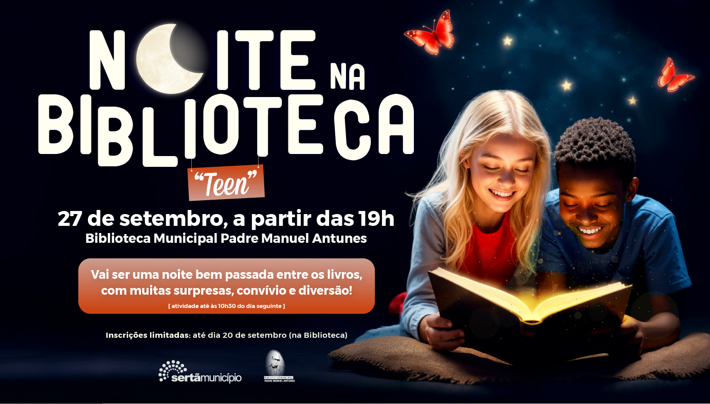 No próximo dia 27 de setembro, a Biblioteca Municipal Padre Manuel Antunes, na Sertã, acolhe uma nova edição da “Noite na Biblioteca”, desta vez destinada ao público teen - jovens dos 13 aos 18 anos.