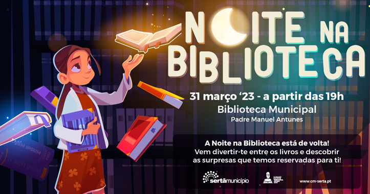 O próximo dia 31 de março marca o regresso de uma das divertidas atividades da Biblioteca Municipal Padre Manuel Antunes, na Sertã: “Noite na Biblioteca”. Com início agendado para as 19 horas, a biblioteca vai ganhar vida durante a noite, num serão que promete muitas aventuras e surpresas para crianças dos 6 aos 12 anos. As inscrições, no valor de 1,5€, são limitadas e decorrem presencialmente até 24 de março na Biblioteca Municipal Padre Manuel Antunes, na Avenida Gonçalo Rodrigues Caldeira, na Sertã.