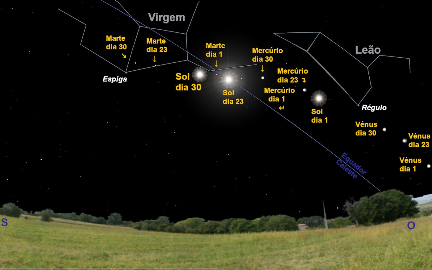Pelas sete horas e cinquenta minutos de dia vinte e três, o movimento da Terra ao redor do Sol fará com este último seja visto sobre a linha do equador celeste (projeção do equador da Terra na esfera celeste). No nosso país chamamos a esta efeméride de equinócio outonal, pois a partir deste instante o hemisfério sul terrestre passa a estar mais iluminado do que o hemisfério norte, dando assim origem ao outono nesta parte do globo.