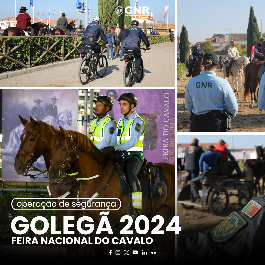 A Guarda Nacional Republicana (GNR), através do Comando Territorial de Santarém, entre hoje, dia o1, e o dia 11 de novembro, está a realizar uma operação de segurança no âmbito da Feira Nacional do Cavalo, na Golegã e zona envolvente. O objetivo é garantir a segurança e a tranquilidade pública de todos os visitantes, entidades e habitantes locais, bem como o controlo e fluidez rodoviária.