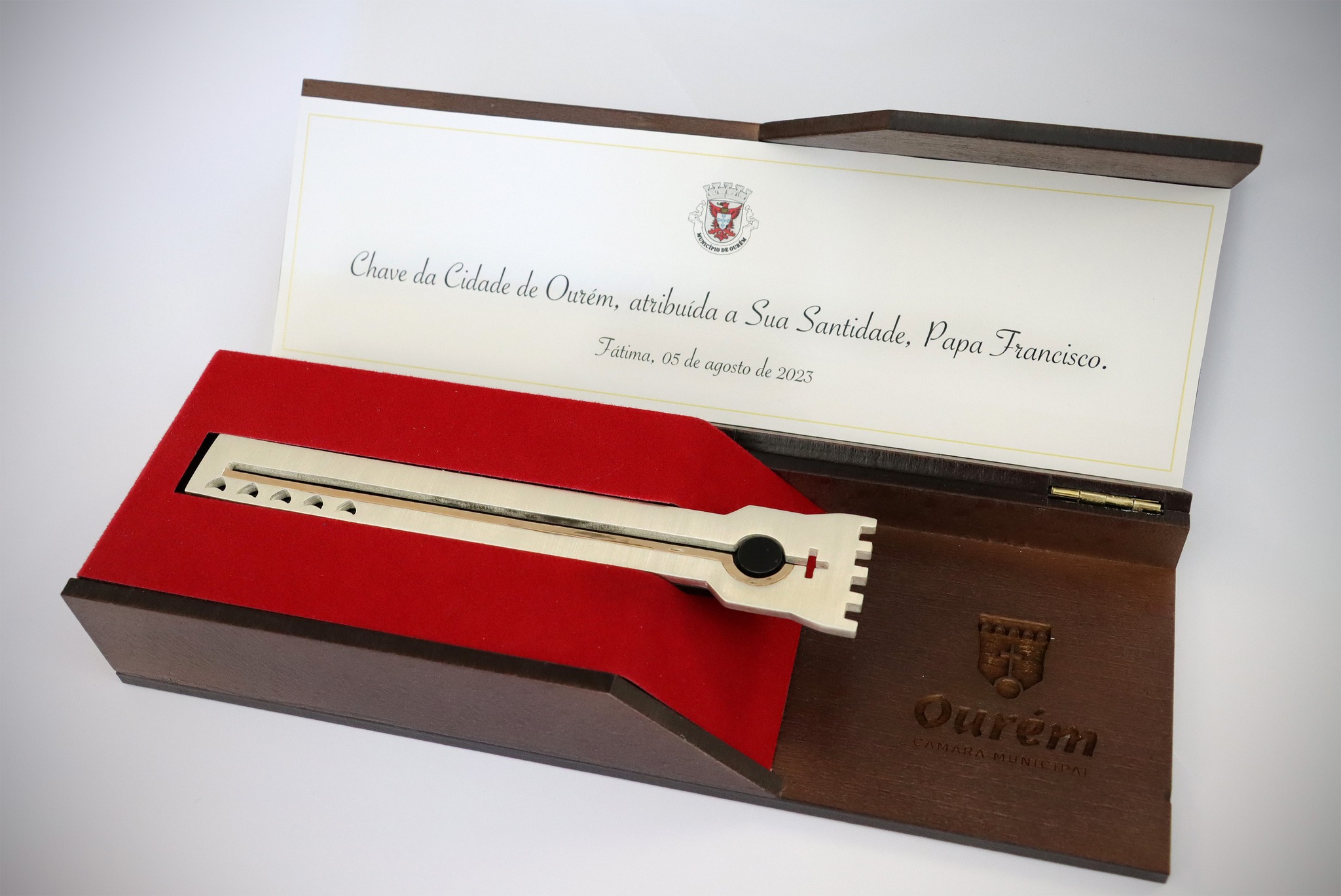A Câmara Municipal de Ourém anunciou a entrega, no passado sábado, em Fátima, da Chave da Cidade de Ourém ao Papa Francisco, durante a deslocação que o pontífice fez à Cova da Iria.