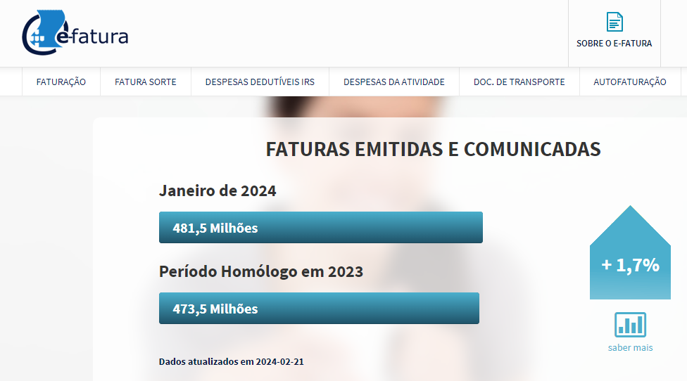 A Autoridade Tributária (AT) prolongou por dois dias, até quarta-feira, o prazo para a validação de faturas relativas a 2023 no portal e-fatura, depois de constrangimentos no último dia do prazo inicial.